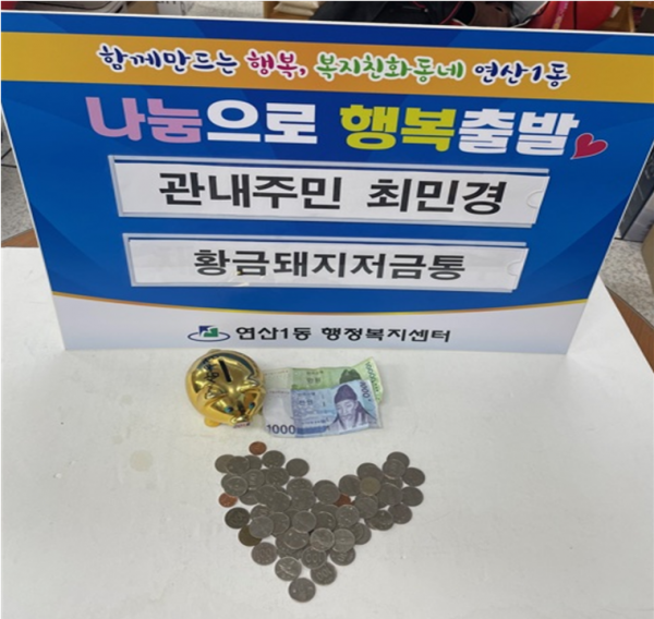 연산1동 주민 최민경, 「사랑의 황금돼지 저금통」 기탁