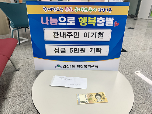 연산1동 주민 이기철, 이웃돕기 성금 기탁