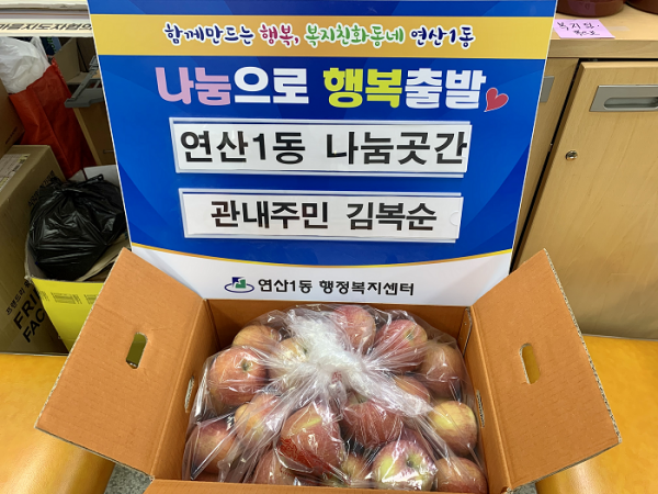 관내주민 김복순, 연산1동 김치곳간 식료품 기탁 > 연산1동