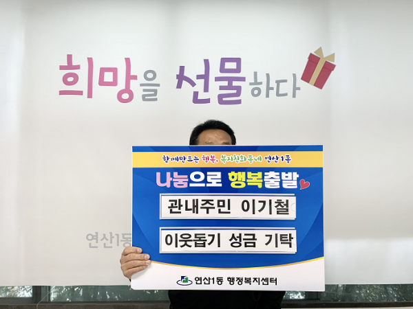 연산1동 주민 이기철, 이웃돕기 성금 기탁