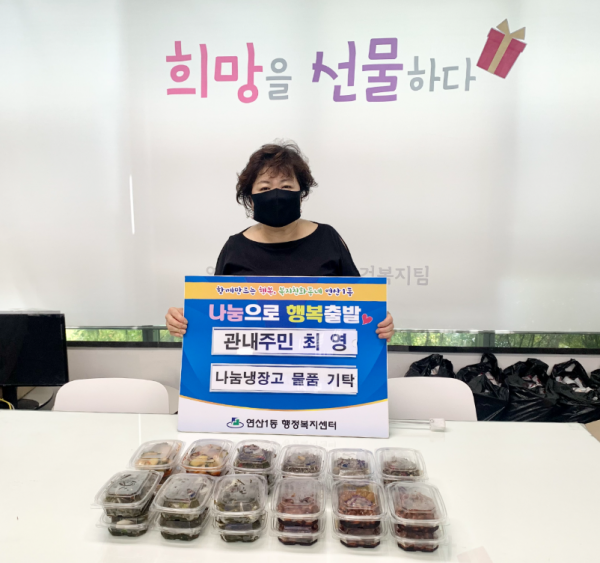 관내주민 최영, 연산1동 나눔냉장고 식료품 기탁 > 연산1동