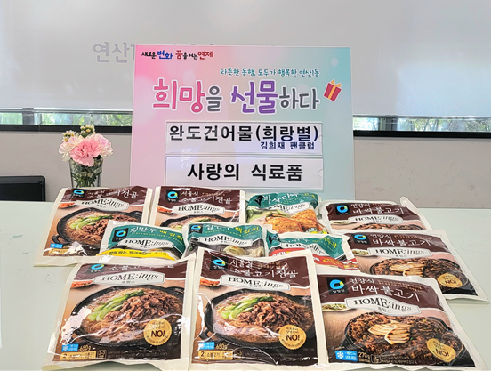 완도건어물(희랑별, 김희재 팬클럽), 연산1동 나눔냉장고 식료품 기탁