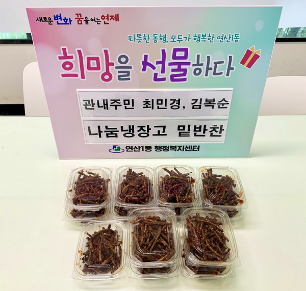 관내주민 최민경 김복순, 연산1동 나눔냉장고 식료품 기탁