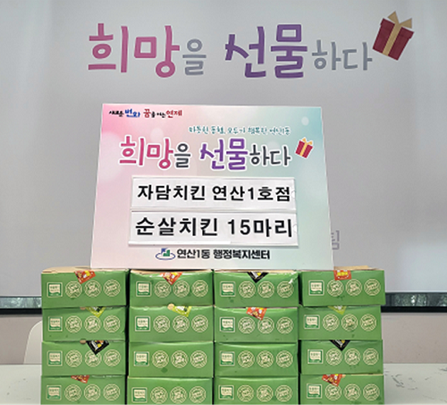 자담치킨 연산1호점, 결식우려 주민 위한 치킨 기탁 > 연산1동