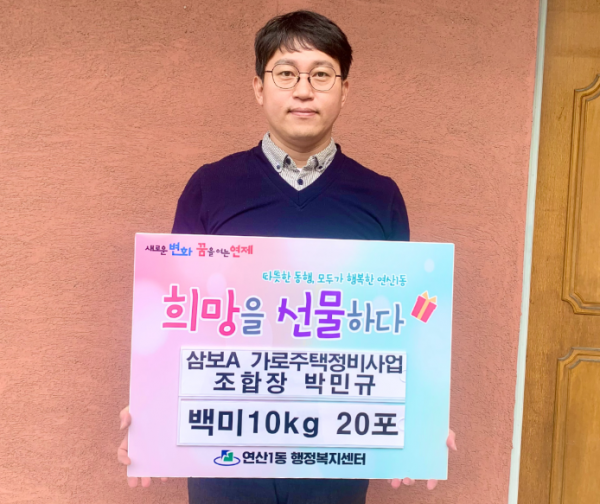 삼보아파트 가로주택정비사업조합, 화환 대신 받은 백미 기탁 > 연산1동