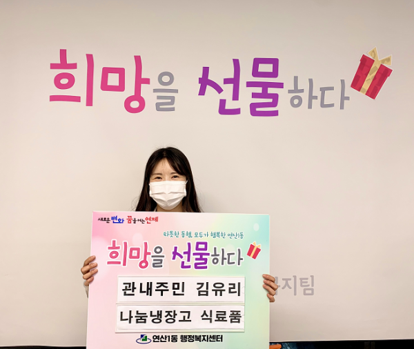 관내주민 김유리, 연산1동 나눔냉장고 식료품 등 기탁 > 연산1동