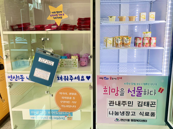 관내주민 김태곤, 연산1동 나눔냉장고 식료품 등 기탁 > 연산1동