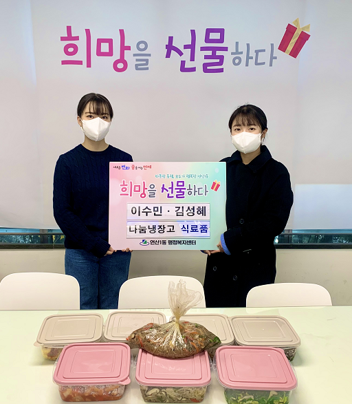관내주민 이수민·김성혜, 연산1동 나눔냉장고 식료품 등 기탁