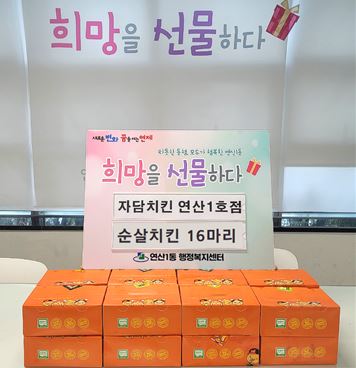 자담치킨 연산1호점(대표 서병오), 결식우려 주민을 위한 순살치킨 기탁