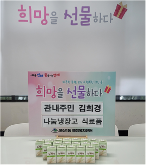 관내주민 김희경, 연산1동 나눔냉장고 식료품 기탁