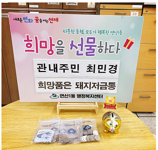 관내주민 최민경, 희망품은 돼지저금통 기탁 > 연산1동