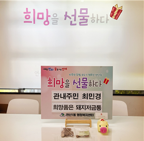 관내주민 최민경, 희망품은 돼지저금통 기탁 > 연산1동