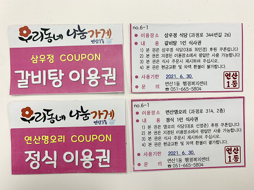 연산1동 「우리동네 나눔가게」 나눔쿠폰 전달