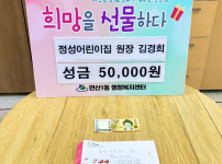 정성어린이집 원장, 이웃돕기 성금 기탁