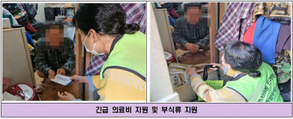❍ 지원내용 : 병원 치료비 10만원, 부식류(라면, 누룽지, 빵 등)지원