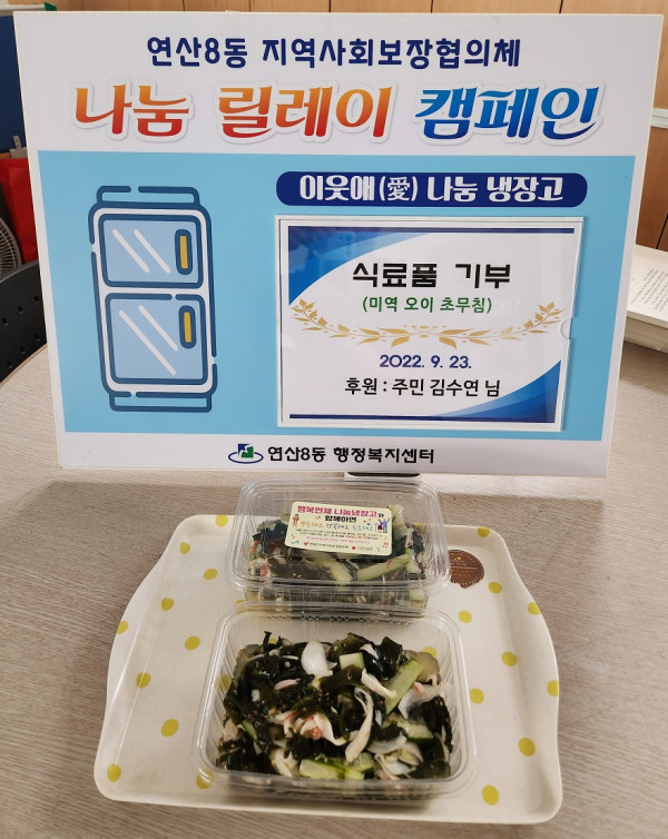 - 다음글(연산8동)이웃애 나눔 냉장고 물품 후원 22.09.29