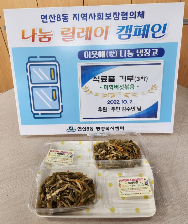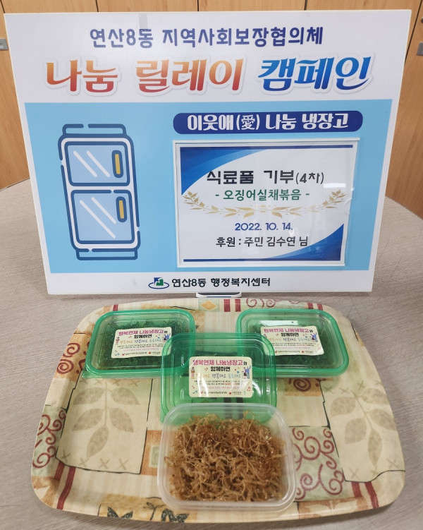 (연산8동)관내 주민 김수연, 이웃애(愛) 나눔 냉장고 반찬 기탁(3,4,5,6회차)