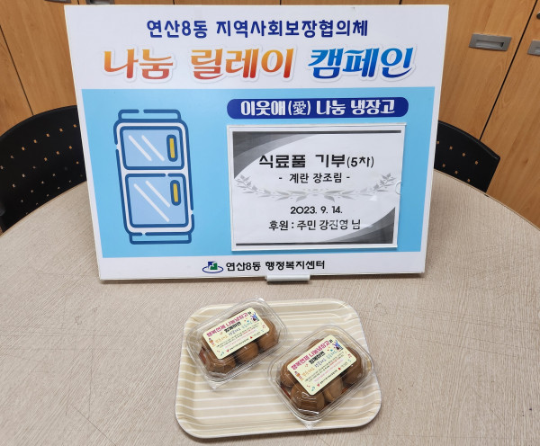 기탁내용: 두부전 3팩(12천원 상당), 계란장조림 2팩(10천원 상당), 계란 장조림 2팩, 된장찌개 2팩(20천원 상당),