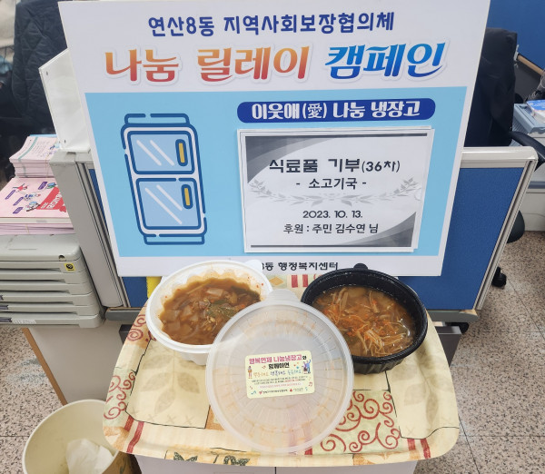 (연산8동) 관내 주민, 이웃애 나눔 냉장고 반찬 기탁(10월, 2명)