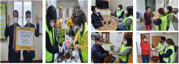 - 식물 식재, 화분 전달, 안부확인 : 동 지역사회보장협의체, 찾아가는 복지팀